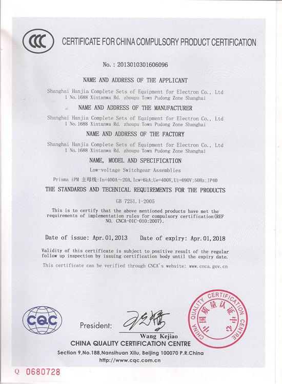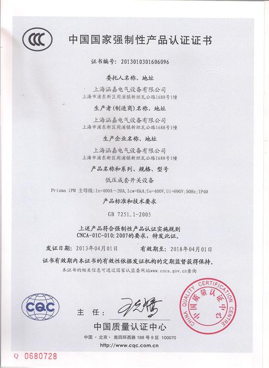 iPM标准化配电箱(柜)CCC认证证书