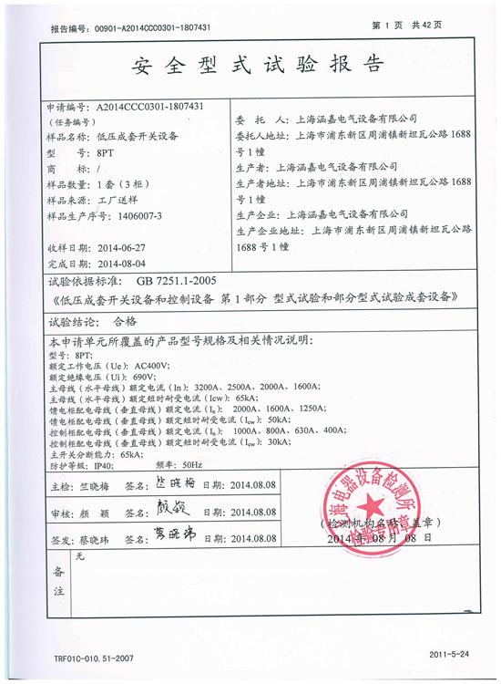 8PT低压成套开关设备试验报告